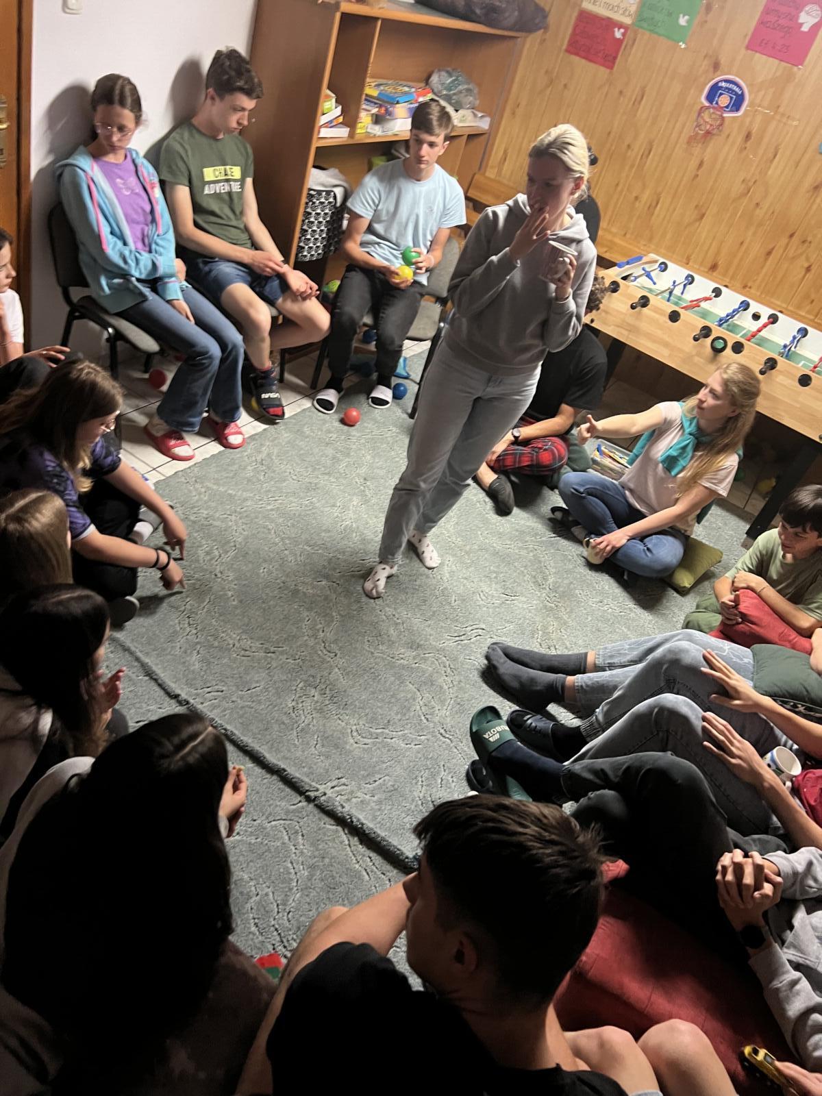 Po ogłoszeniach przechodzimy do części nieoficjalnej spotkania, gdzie panuje śmiech, rozmowy, ping-pong, kisiel w kubku i mniej lub bardziej zdrowe przekąski. Jeździmy na coroczne kilkudniowe wyjazdy integracyjne – najczęściej na Kozińce, spotkania organizowane przez CME i diecezjalnego duszpasterza młodzieżowego, organizujemy nocowanie na parafii i wyjścia na łyżwy. Chcemy wspierać młodzież w naśladowaniu Jezusa, dlatego we wtorki z chłopakami spotykamy się też na grupce biblijnej. W sezonie zimowym raz w tygodniu chodzimy na halę sportową, żeby aktywnie spędzić czas grając w gry zespołowe.