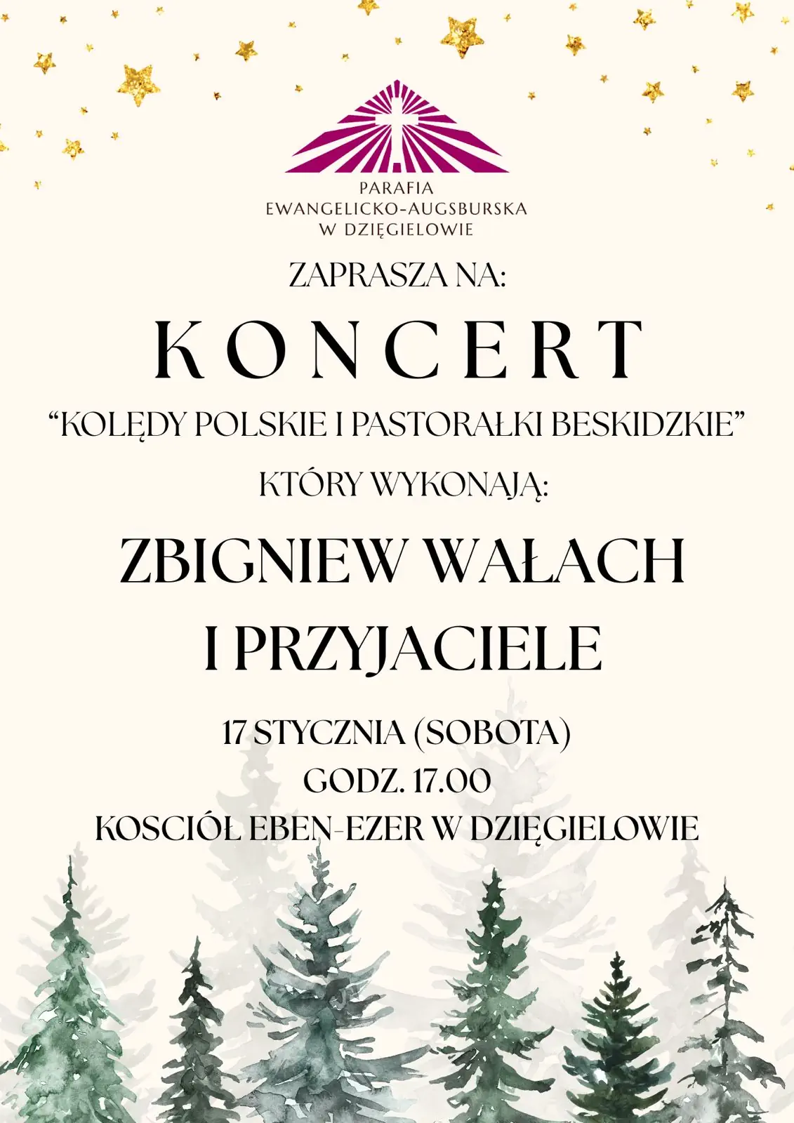 ➡️W sobotę 17 stycznia, o godz. 17.00, zapraszamy do naszego kościoła na wyjątkowy koncert w wykonaniu Zbigniewa Wałacha i jego muzycznych przyjaciół!